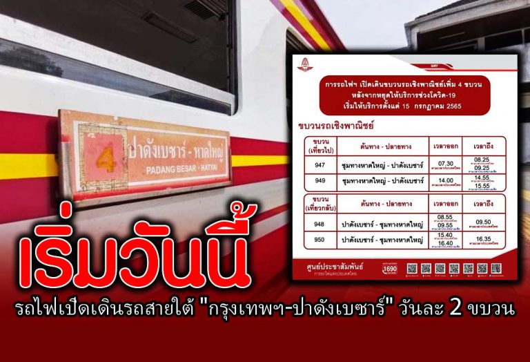 เริ่มวันนี้! รถไฟเปิดเดินรถสายใต้ “กรุงเทพฯ-ปาดังเบซาร์”