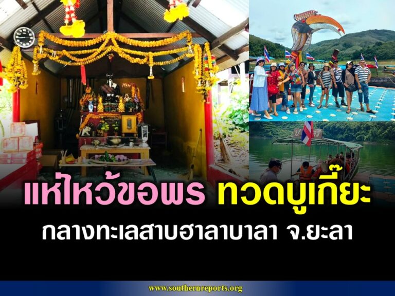 นักท่องเที่ยวแห่ไหว้ขอพร ทวดบูเกี๊ยะ กลางทะเลสาบฮาลาบาลา จ.ยะลา