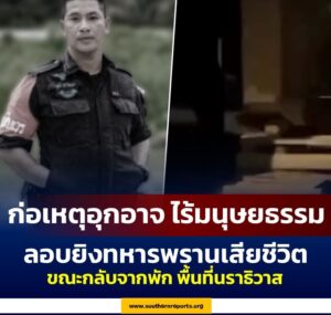 ก่อเหตุอุกอาจ! ไร้มนุษยธรรม ลอบยิงทหารพรานเสียชีวิต ขณะกลับจากพัก พื้นที่นราธิวาส
