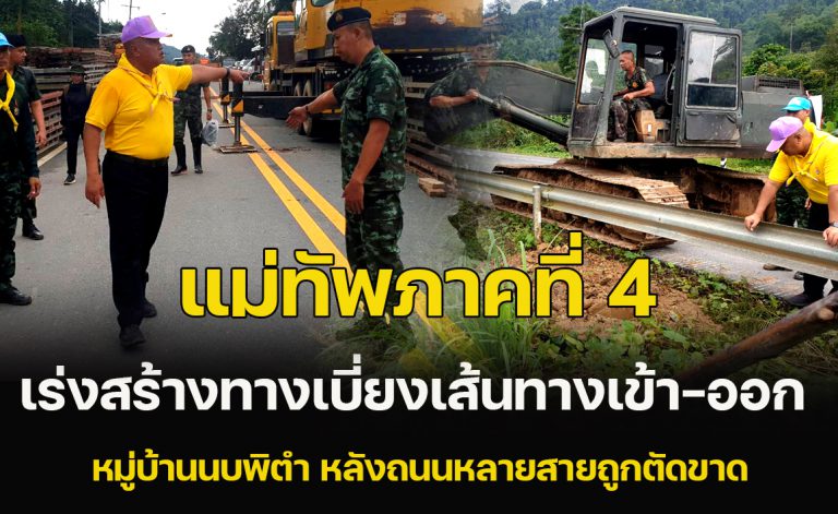 แม่ทัพภาคที่ 4 ระดมกำลังเร่งสร้างทางเบี่ยงซ่อมสะพานเชื่อมเส้นทางเข้า-ออก หมู่บ้านนบพิตำ หลังถนนหลายสายถูกตัดขาด