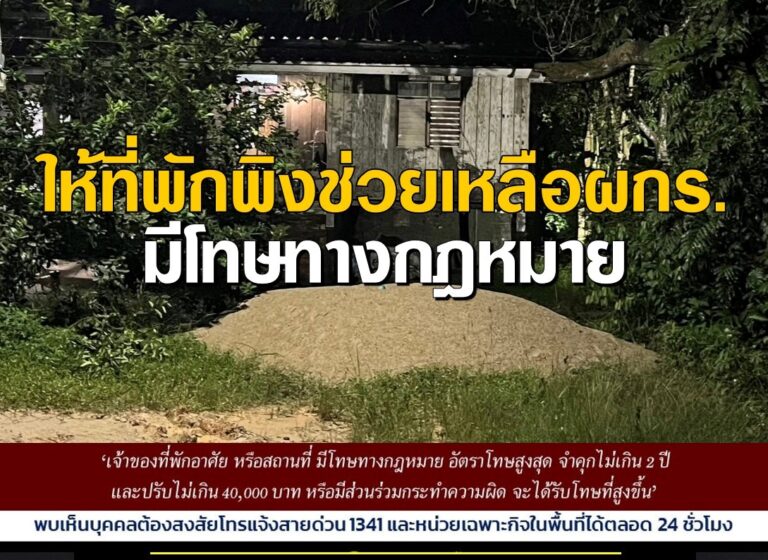 ให้ที่พักพิงช่วยเหลือผกร. มีโทษทางกฎหมาย