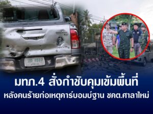 มทภ.4 สั่งกำชับคุมเข้มพื้นที่ หลังคนร้ายก่อเหตุคาร์บอมบ์ฐาน ชคต.ศาลาใหม่ นราธิวาส