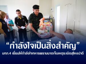 “กำลังใจเป็นสิ่งสำคัญ” แม่ทัพภาคที่ 4 เยี่ยมให้กำลังใจทหารพรานบาดเจ็บจากเหตุระเบิดในพื้นที่ อ.สุไหงปาดี จ.นราธิวาส