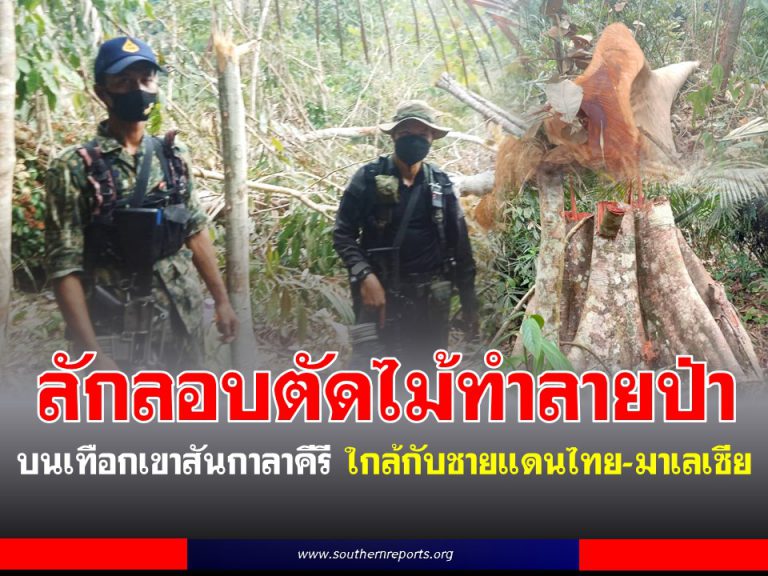 ลักลอบตัดไม้ทำลายป่า บนเทือกเขาสันกาลาคีรี แนวทะเลสาบเขื่อนบางลาง ใกล้กับชายแดนไทย-มาเลเซีย
