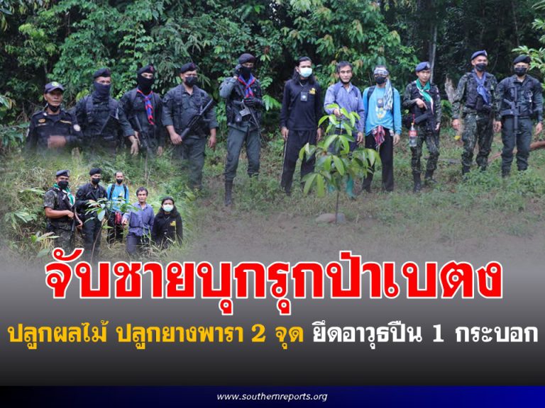 จนท.ป่าไม้ ตชด. และอส. จับชายบุกรุกป่าสงวนแห่งชาติป่าเบตง ปลูกผลไม้ ปลูกยางพารา 2 จุด พร้อมอาวุธปืน 1 กระบอก
