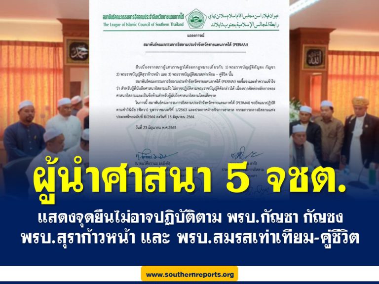 ผู้นำศาสนา 5 จังหวัดชายแดนใต้ แสดงจุดยืนไม่อาจปฏิบัติตาม พรบ. กัญชา กัญชง, พรบ.สุราก้าวหน้า และ พรบ. สมรสเท่าเทียม-คู่ชีวิต