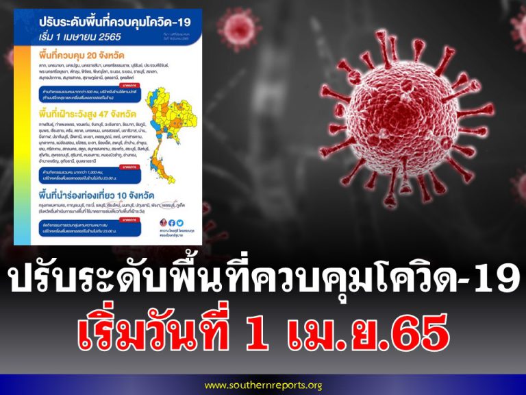 ปรับระดับพื้นที่ควบคุมโควิด-19 เริ่มวันที่ 1 เม.ย.65