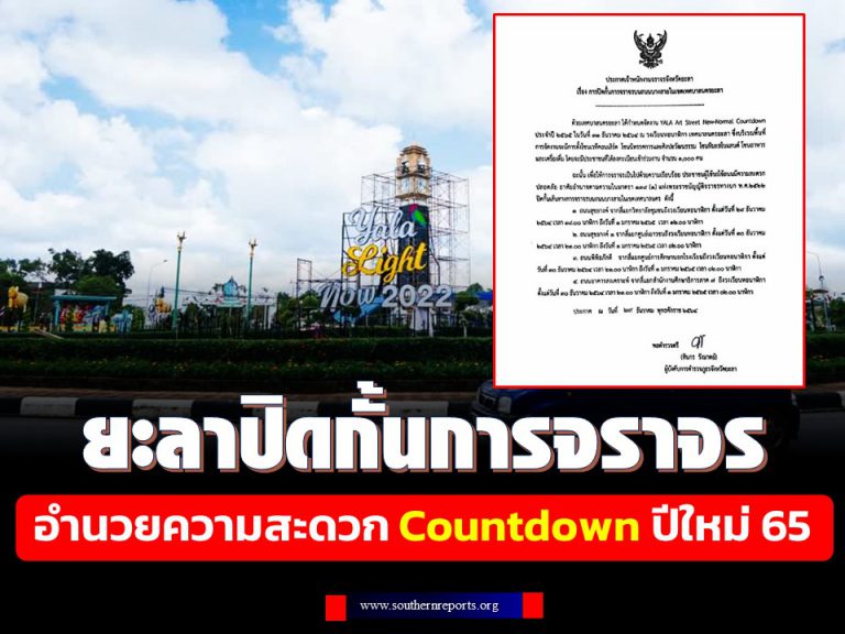 เทศบาลนครยะลาแจ้งปิดกั้นการจราจรถนนบาง อำนวยความสะดวกในการจัดงาน Countdown ปีใหม่ 65