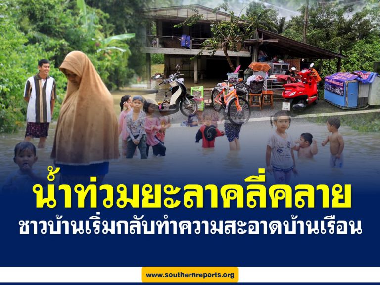 สถานการณ์น้ำท่วมยะลาคลี่คลาย หลังฝนซา ชาวบ้านเริ่มทำความสะอาดบ้านเรือน