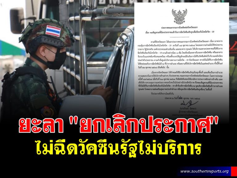 ยะลา “ยกเลิกประกาศ” ไม่ฉีดวัคซีนรัฐไม่บริการ พร้อมชวน ปชช. รับวัคซีน ณ จุดบริการต่าง ๆ