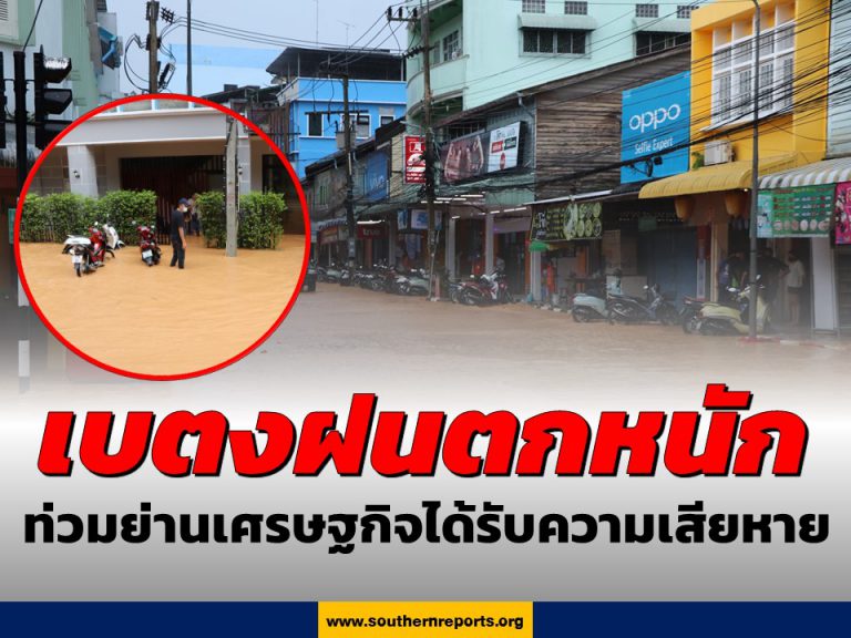 เบตงฝนตกหนัก น้ำไหลจากภูเขา เข้าท่วมย่านเศรษฐกิจ ร้านค้าข้าวของได้รับความเสียหาย