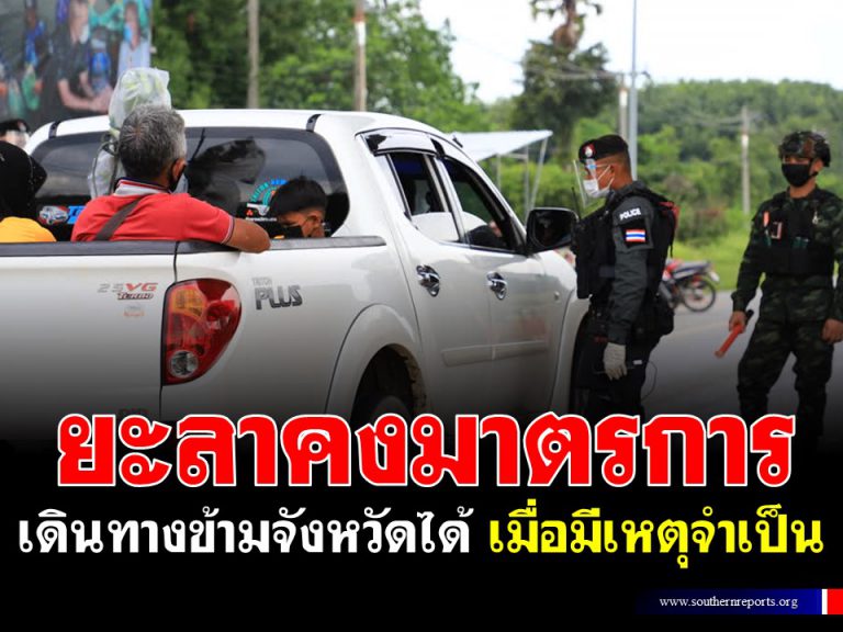 ยะลาคงมาตรการ ผ่อยคลาย เดินทางข้ามจังหวัดได้ เมื่อมีเหตุจำเป็น