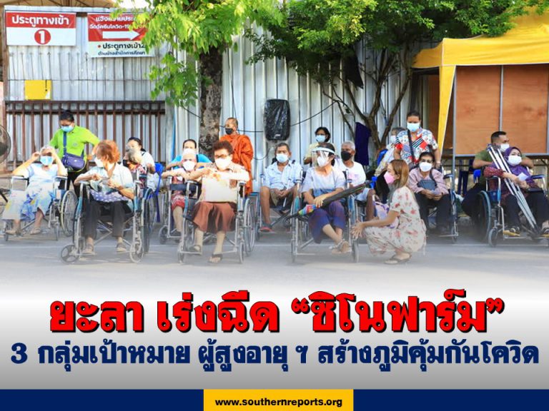จังหวัดยะลา เร่งฉีด “ซิโนฟาร์ม” 3 กลุ่มเป้าหมาย ผู้สูงอายุ ฯ สร้างภูมิคุ้มกันโควิด
