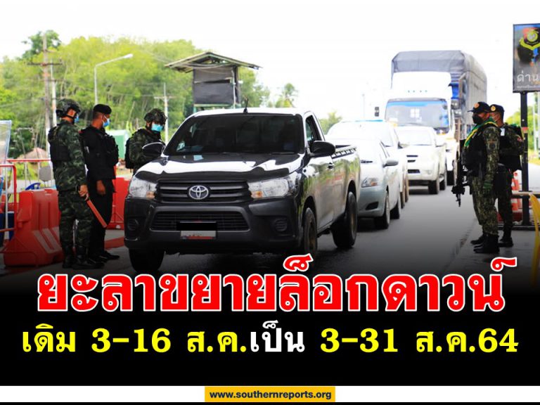 ยะลาขยายล็อกดาวน์ เดิม 3-16 ส.ค.64 เป็น 3-31 ส.ค.64