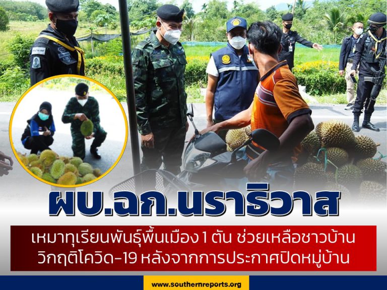ผบ.ฉก.นราธิวาส เหมาทุเรียนพันธุ์พื้นเมือง 1 ตัน ช่วยเหลือชาวบ้านในยามวิกฤติโควิด-19 หลังจากการประกาศปิดหมู่บ้าน
