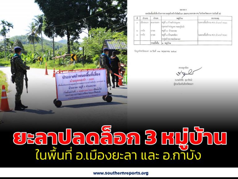 ยะลาปลดล็อกแล้ว 3 หมู่บ้าน ในพื้นที่ อ.เมืองยะลา และ อ.กาบัง