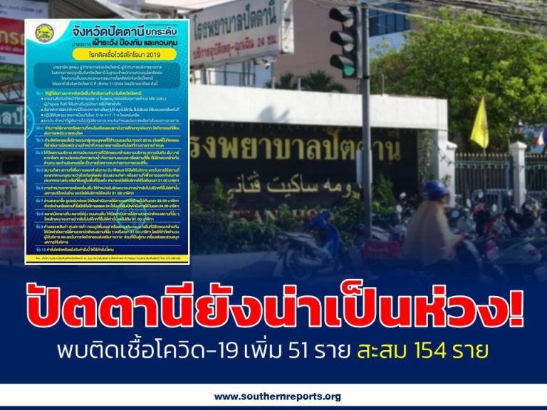 ปัตตานียังน่าเป็นห่วง! พบติดเชื้อโควิด-19 เพิ่ม 51 ราย สะสม 154 ราย