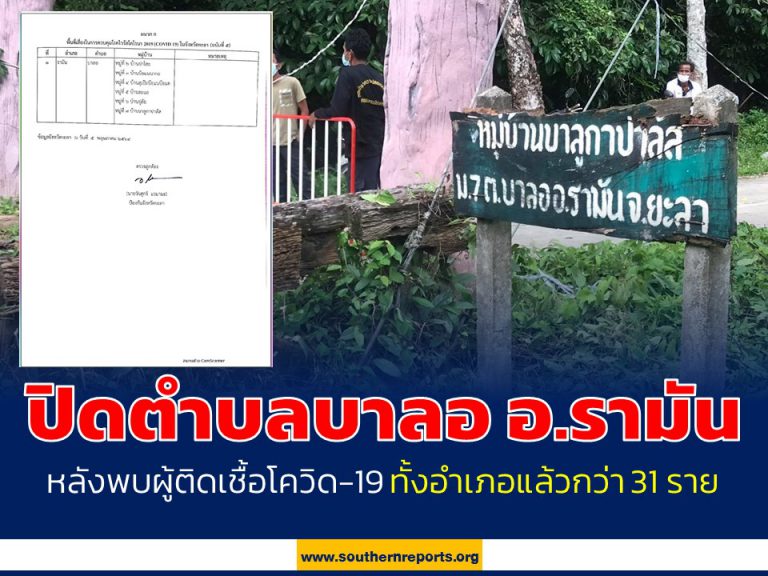 สั่งปิดตำบลบาลอ อ.รามัน หลังพบผู้ติดเชื้อโควิด-19 ทั้งอำเภอแล้วกว่า 31 ราย
