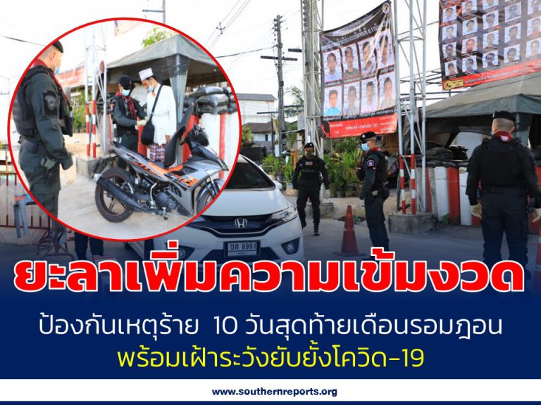 ยะลาเพิ่มความเข้มงวด ป้องกันเหตุร้าย ห้วง 10 วันสุดท้ายเดือนรอมฎอน พร้อมเฝ้าระวังยับยั้งโควิด-19