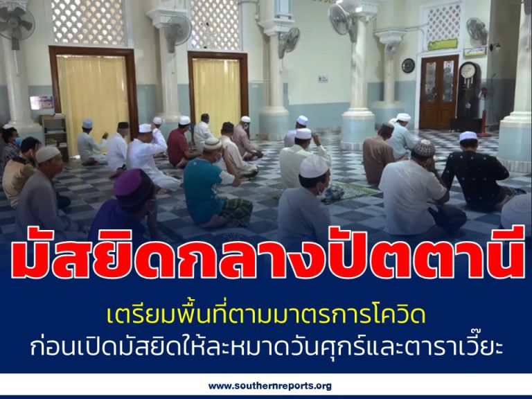 เริ่มละหมาดวันนี้! มัสยิดกลางปัตตานีเตรียมพื้นที่ตามมาตรการโควิด ก่อนเปิดมัสยิดให้ละหมาดวันศุกร์และตาราเวี๊ยะ