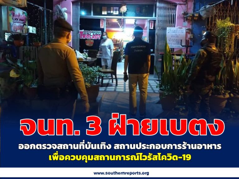 3 ฝ่ายเบตง ออกตรวจสถานที่บันเทิง ร้านอาหาร เพื่อควบคุมสถานการณ์ไวรัสโควิด-19