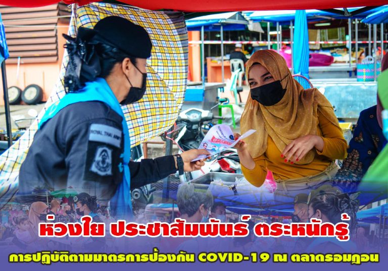ห่วงใยประชาชน ประชาสัมพันธ์ สร้างความตระหนักรู้การปฏิบัติตามมาตรการป้องกัน COVID-19 ณ ตลาดรอมฎอน