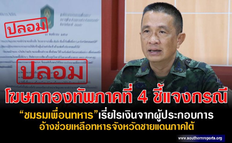 โฆษกกองทัพภาคที่ 4 ชี้แจงกรณี “ชมรมเพื่อนทหาร”เรี่ยไรเงินจากผู้ประกอบการ อ้างช่วยเหลือทหารจังหวัดชายแดนภาคใต้