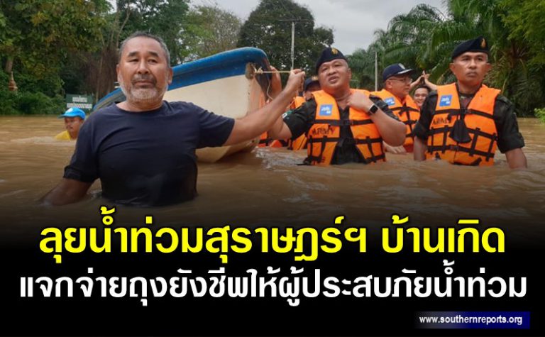 แม่ทัพภาค4 “ลุยน้ำท่วมสุราษฎร์ฯ บ้านเกิด” แจกจ่ายถุงยังชีพให้ผู้ประสบภัยน้ำท่วม