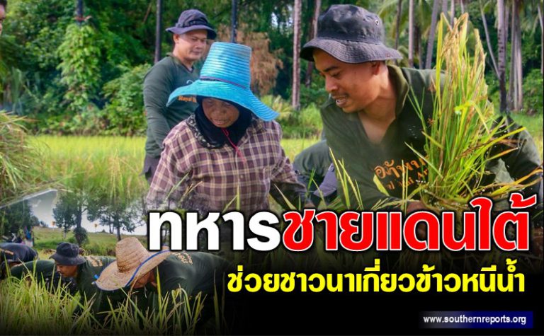 ทหารชายแดนใต้ เร่งให้ความช่วยเหลือเก็บเกี่ยวข้าวของชาวนา ที่ประสบปัญหาน้ำท่วมนาข้าวพื้นที่ปัตตานี