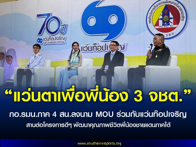 “แว่นตาเพื่อพี่น้อง 3 จชต.” กอ.รมน.ภาค 4 สน.ลงนาม MOU ร่วมกับแว่นท๊อปเจริญ สานต่อโครงการดีๆ เพื่อพี่น้องชายแดนภาคใต้