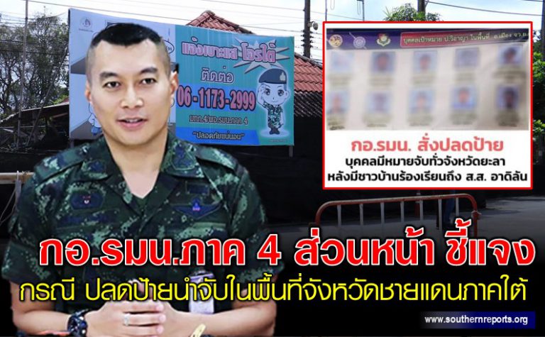 กอ.รมน.ภาค 4 ส่วนหน้า ชี้แจง กรณี ปลดป้ายนำจับในพื้นที่จังหวัดชายแดนภาคใต้