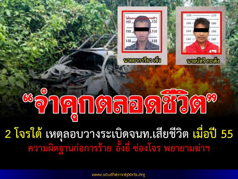 “จำคุกตลอดชีวิต” 2 โจรใต้ เหตุลอบวางระเบิดทหารเสียชีวิต 1 เจ็บอีก 3 เมื่อปี 55 ความผิดฐานก่อการร้าย อั้งยี่ ซ่องโจร พยายามฆ่าฯ