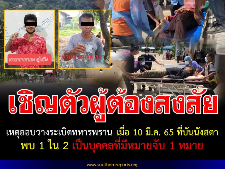 เชิญตัวผู้ต้องสงสัย เหตุลอบวางระเบิดทหารพราน เมื่อ 10 มี.ค. 65 ที่บันนังสตา