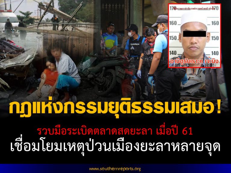 กฎแห่งกรรมยุติธรรมเสมอ! รวบมือระเบิดตลาดสดยะลา เมื่อปี 61 เชื่อมโยมเหตุป่วนเมืองยะลาหลายจุด