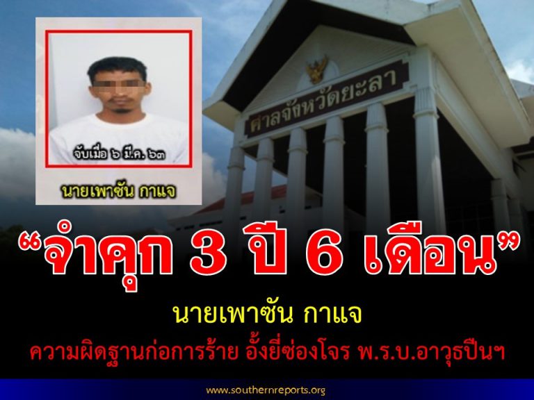 ผิดก็ต้องรับโทษ! “จำคุก 3 ปี 6 เดือน” นายเพาซัน กาแจ ความผิดฐานก่อการร้าย อั้งยี่ซ่องโจร พ.ร.บ.อาวุธปืนและวัตถุระเบิด