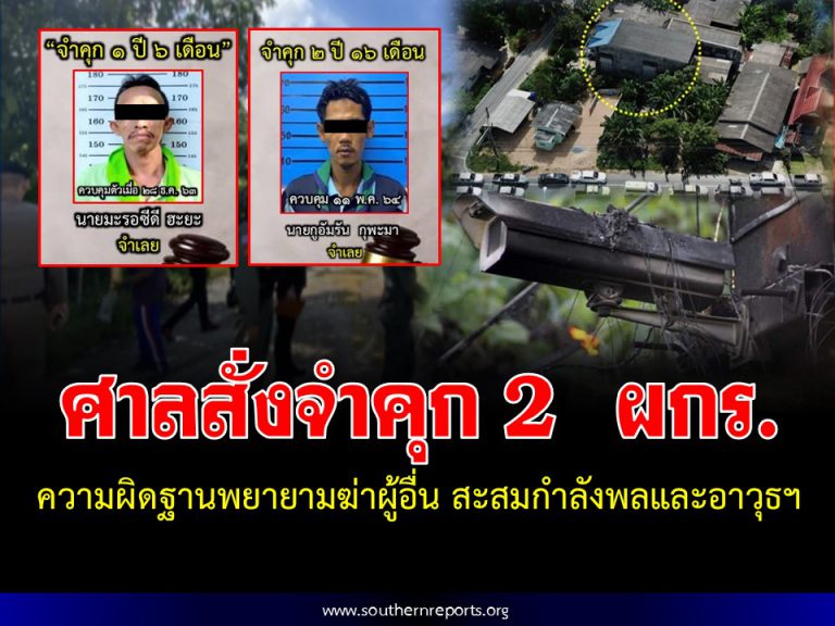 ศาลจังหวัดยะลา ศาลจังหวัดนราธิวาส สั่งจำคุก 2 ผกร. ความผิดฐานพยายามฆ่าผู้อื่น