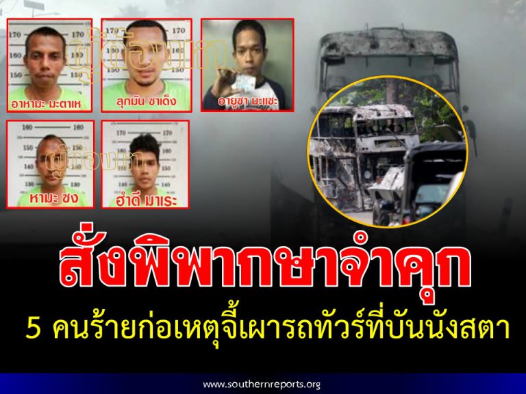 สั่งพิพากษาจำคุก 5 คนร้ายก่อเหตุจี้เผารถทัวร์เบตง-กรุงเทพ ที่บันนังสตา เมื่อปี 60