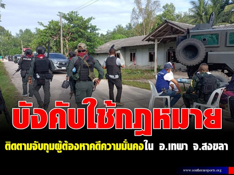จนท.บังคับใช้กฎหมายติดตามจับกุมผู้ต้องหาคดีความมั่นคงในพื้นที่ ต.ปากบาง อ.เทพา จ.สงขลา