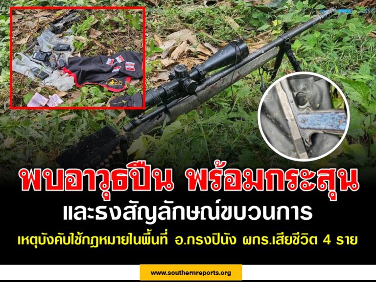 พบอาวุธปืน ธงสัญลักษณ์ขบวนการในที่เกิดเหตุ เหตุบังคับใช้กฎหมายในพื้นที่ อ.กรงปินัง จ.ยะลา ผกร.เสียชีวิต 4 ราย