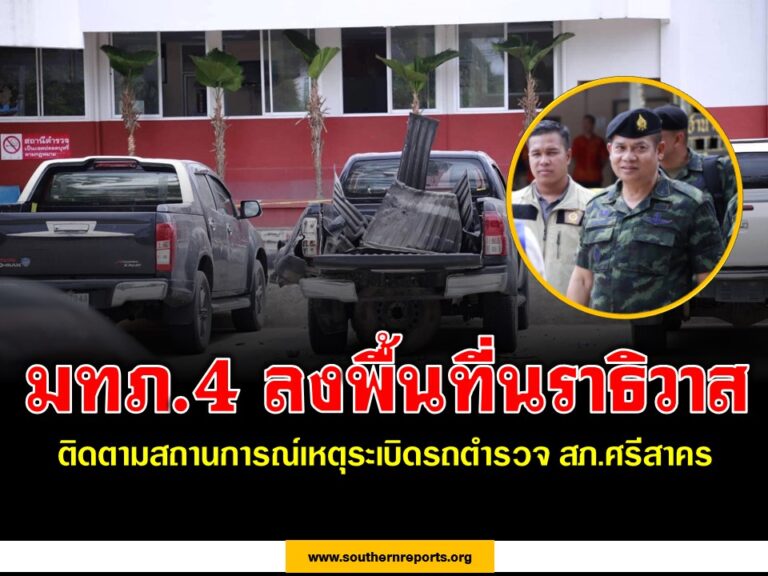 มทภ.4 ลงพื้นที่นราธิวาส ติดตามสถานการณ์เหตุระเบิดรถตำรวจ สภ.ศรีสาคร