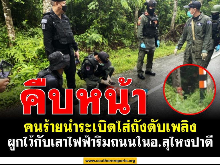 คืบหน้า คนร้ายนำระเบิดใส่ถังดับเพลิง ผูกไว้กับเสาไฟฟ้าริมถนนในอ.สุไหงปาดี จ.นราธิวาส
