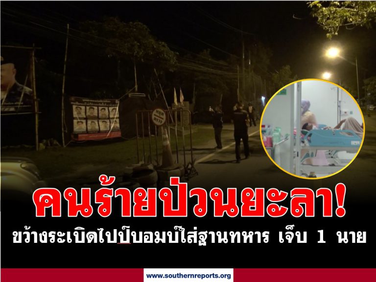 ป่วนยะลา! คนร้ายขว้างระเบิดไปป์บอมบ์ใส่ฐานทหาร ที่ยะลา เจ็บ 1 นาย