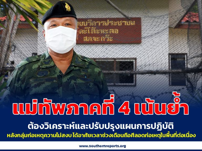 แม่ทัพภาคที่ 4 เน้นย้ำ ต้องวิเคราะห์และปรับปรุงแผนการปฏิบัติ หลังกลุ่มก่อเหตุความไม่สงบ ได้อาศัยเวลาช่วงเดือนถือศีลอดก่อเหตุในพื้นที่ต่อเนื่อง