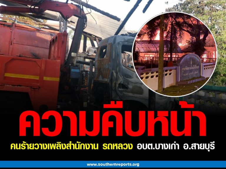 คืบหน้าเหตุคนร้ายวางเพลิงสำนักงาน รถขยะและรถกระเช้า อบต.บางเก่า อ.สายบุรี จ.ปัตตานี