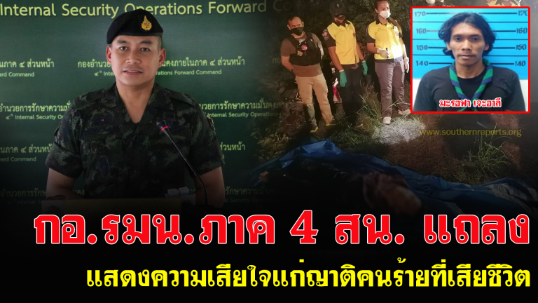 กอ.รมน.ภาค 4 สน. แถลง แสดงความเสียใจแก่ญาติคนร้ายที่เสียชีวิต