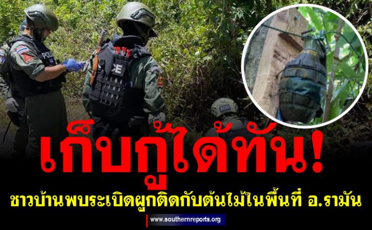 เก็บกู้ได้ทัน! ชาวบ้าน พบระเบิดชนิดขว้าง ผูกติดกับต้นไม้ในพื้นที่ อ.รามัน จ.ยะลา