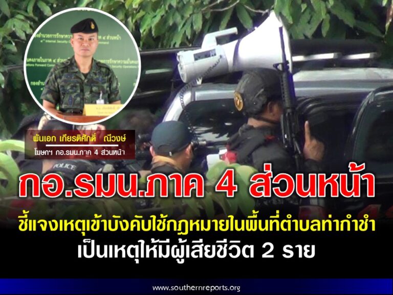 กอ.รมน.ภาค 4 สน. ชี้แจงเหตุเข้าบังคับใช้กฎหมายในพื้นที่ตำบลท่ากำชำ จ.ปัตตานี เป็นเหตุให้มีผู้เสียชีวิต 2 ราย