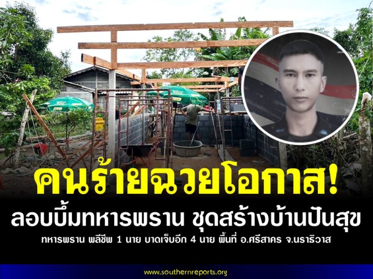 คนร้ายฉวยโอกาส! ลอบบึ้มทหารพราน ชุดสร้างบ้านปันสุขให้ประชาชน ทหารพราน พลีชีพ 1 นาย บาดเจ็บอีก 4 นาย ในพื้นที่ อ.ศรีสาคร จ.นราธิวาส